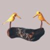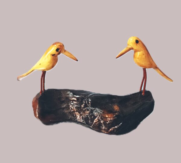 Aesthetic, hand carved, wooden bird with peculiar perch, height-5inch,width-7inch