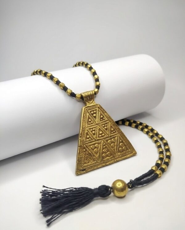 Pendant: Large trapezoid with embossed “tri-dot” tribal engravings.