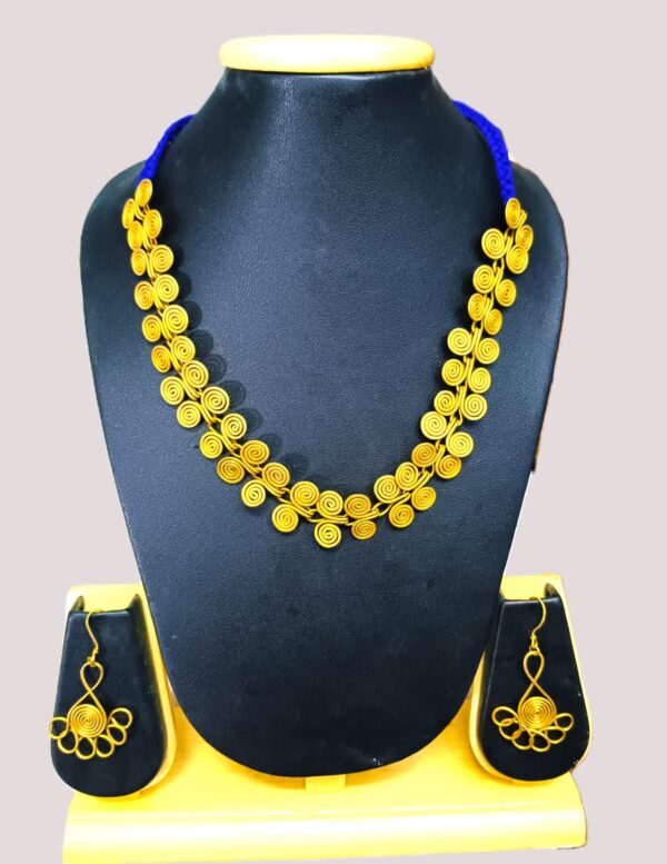 beautiful dokra choker ,string in blue colour thread ,coil shaped choker totally hand crafted.