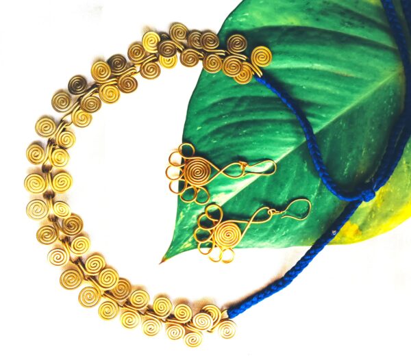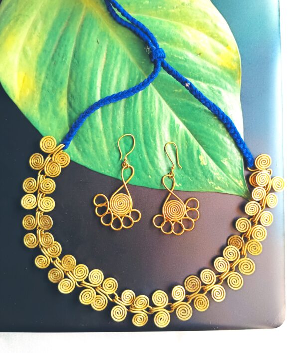 Dokra Spiral choker necklace with earrings, blue colour