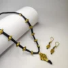 Elegant Single-Line Burfi Pendant with Beads in Black Thread & Matching Earrings