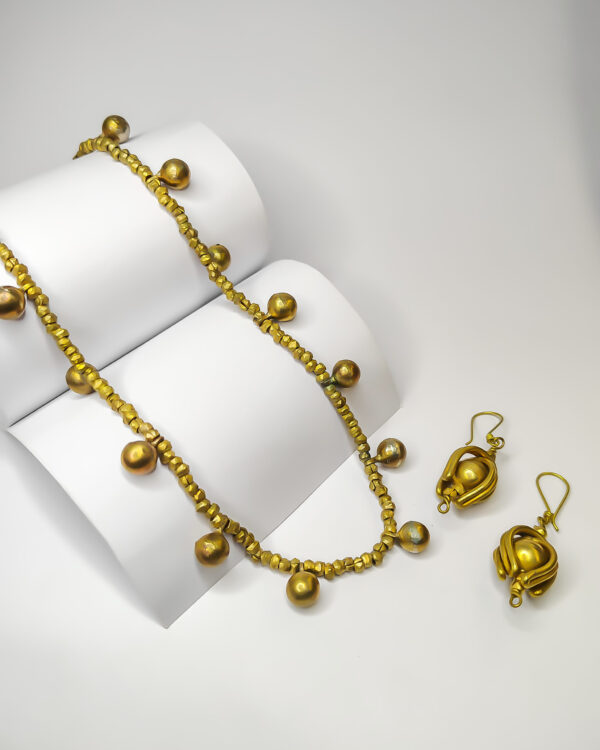 The necklace features beautifully arranged brass beads and balls, meticulously polished to create a rustic yet sophisticated look. Each bead reflects the dedication and artistry of tribal craftsmen, making this piece not just jewelry but a story of culture and tradition.
