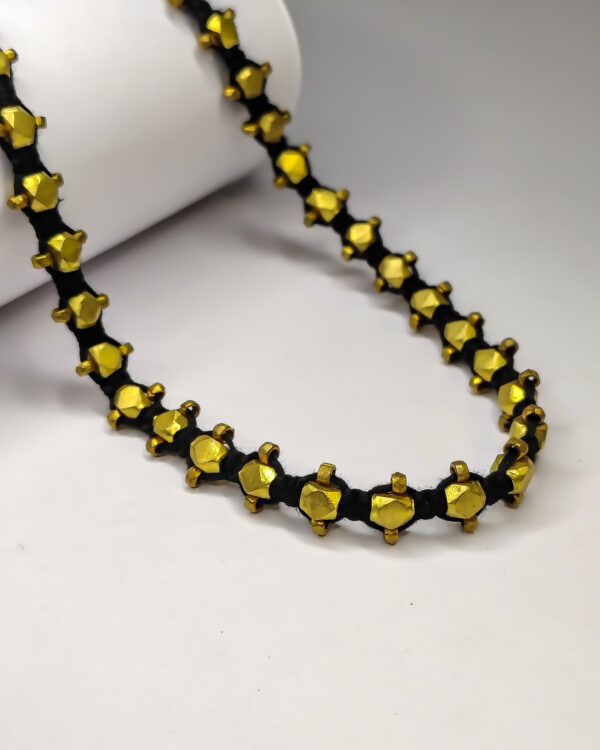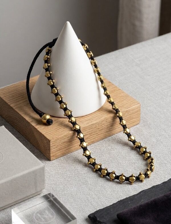 Discover the perfect balance of texture and shine. Our Geometric Station Necklace is designed for the discerning jewelry lover who appreciates sculptural detail. Each faceted bead is cast to catch the light from every angle, contrasted against a premium, high-strength black textile cord. This lightweight yet durable necklace offers a bold aesthetic without the weight of traditional heavy metal chains.
