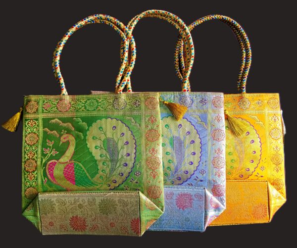 (Pack of 3) Traditional Banarasi Handbags10/10″ | Banarasi Silk Bags