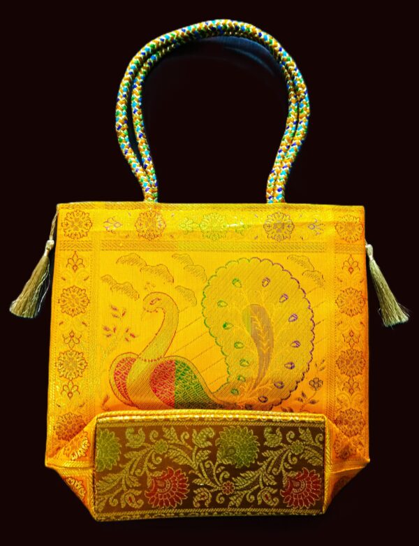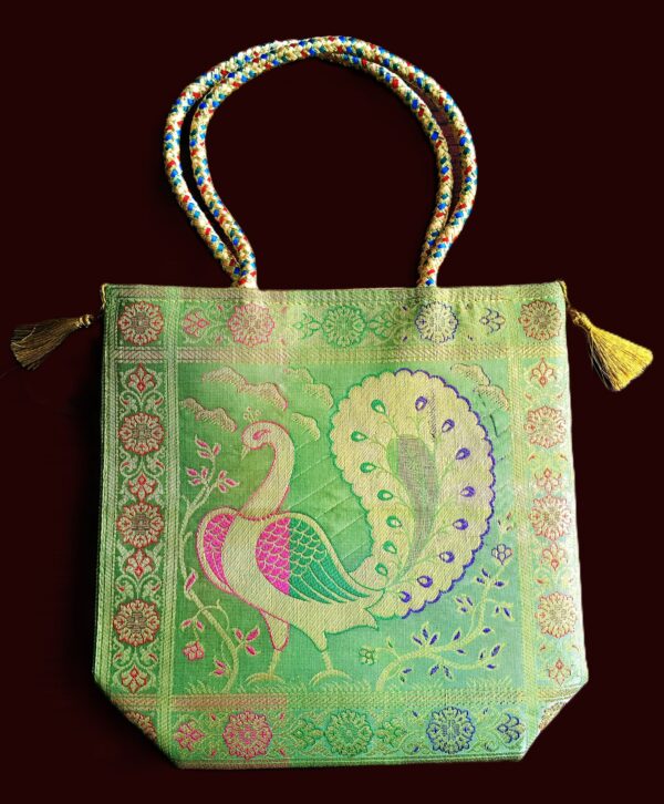 Enhance your style with this Pack of 3 Traditional Banarasi Handbags (10×10″). Crafted from luxurious Banarasi silk, these elegant bags feature intricate designs and rich colors, perfect for festive occasions, weddings, and daily elegance. Lightweight, durable, and spacious enough for essentials, they blend tradition with modern utility. A perfect gift for loved ones!