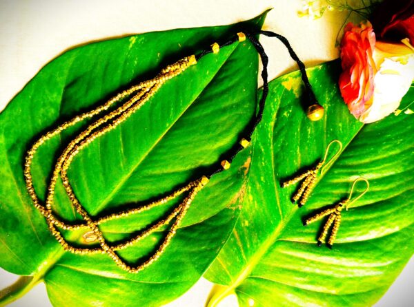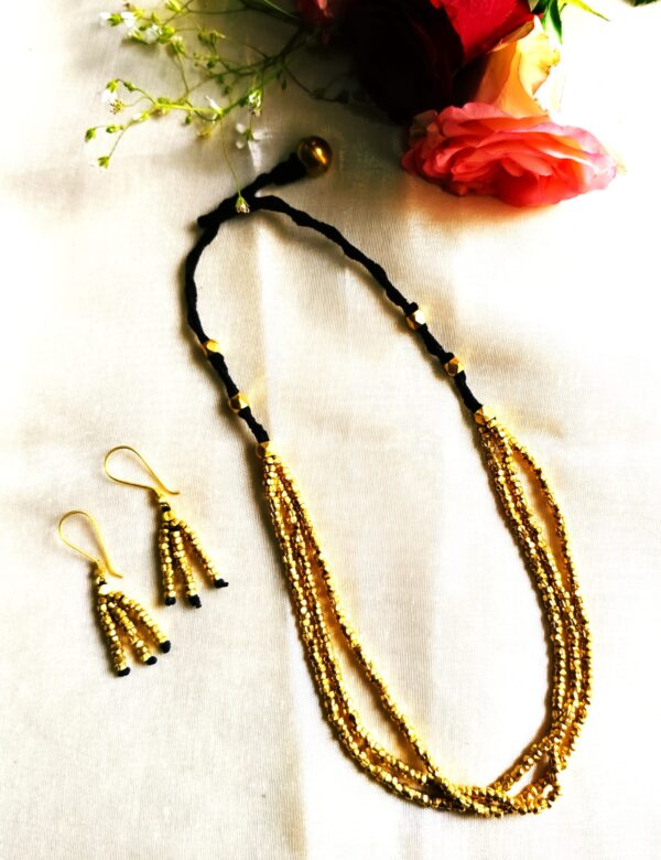 Be the first to review “Stunning,Dokra beads, threeline choker, necklace with earrings”