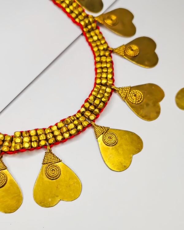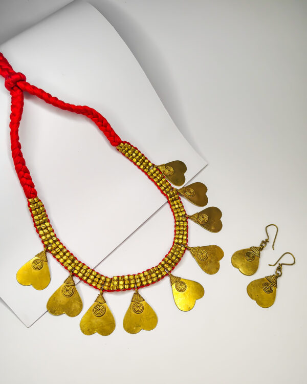 Traditional, Dokra patri and beads necklace with earrings (red-heart)