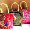(Set of 3) Traditional, Luxurious, Banarasi Hand-Bags, 8x8inch