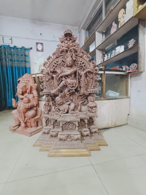The Nataraja statue in pink stone is a breathtaking masterpiece of divine artistry, capturing Lord Shiva in his cosmic dance form. The art of stone carving is probably most eye-catching in the rock-cut sculptures of various temples of Odisha. The art of stone carving is an ancient practice dating back to the 13th century when Odisha was ruled by different dynasties, and that diversity of culture is reflected in the craft. Intricate sculpting and exquisite carvings were done on sandstone, soapstone, serpentinite, markana, marble, and granite.