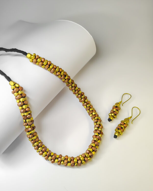 Unique, dokra choker necklace, with earrings, dual-colour, brass-copper beads
