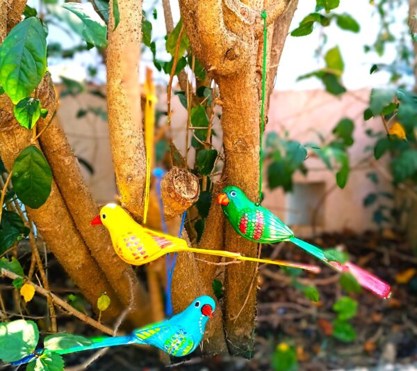 (Pack of 3) Uniuque,Handcrafted, paper-mache, hanging birds inspired by pattachitra art
